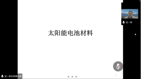 27日上午,赵一新教授则主要针对太阳能电池材料研究方向进行了分析,指出了目前发展新能源尤其是太阳能的迫切性,并跟同学们详细介绍了其课题组关于高效稳定钙钛矿太阳能电池的研究进展。