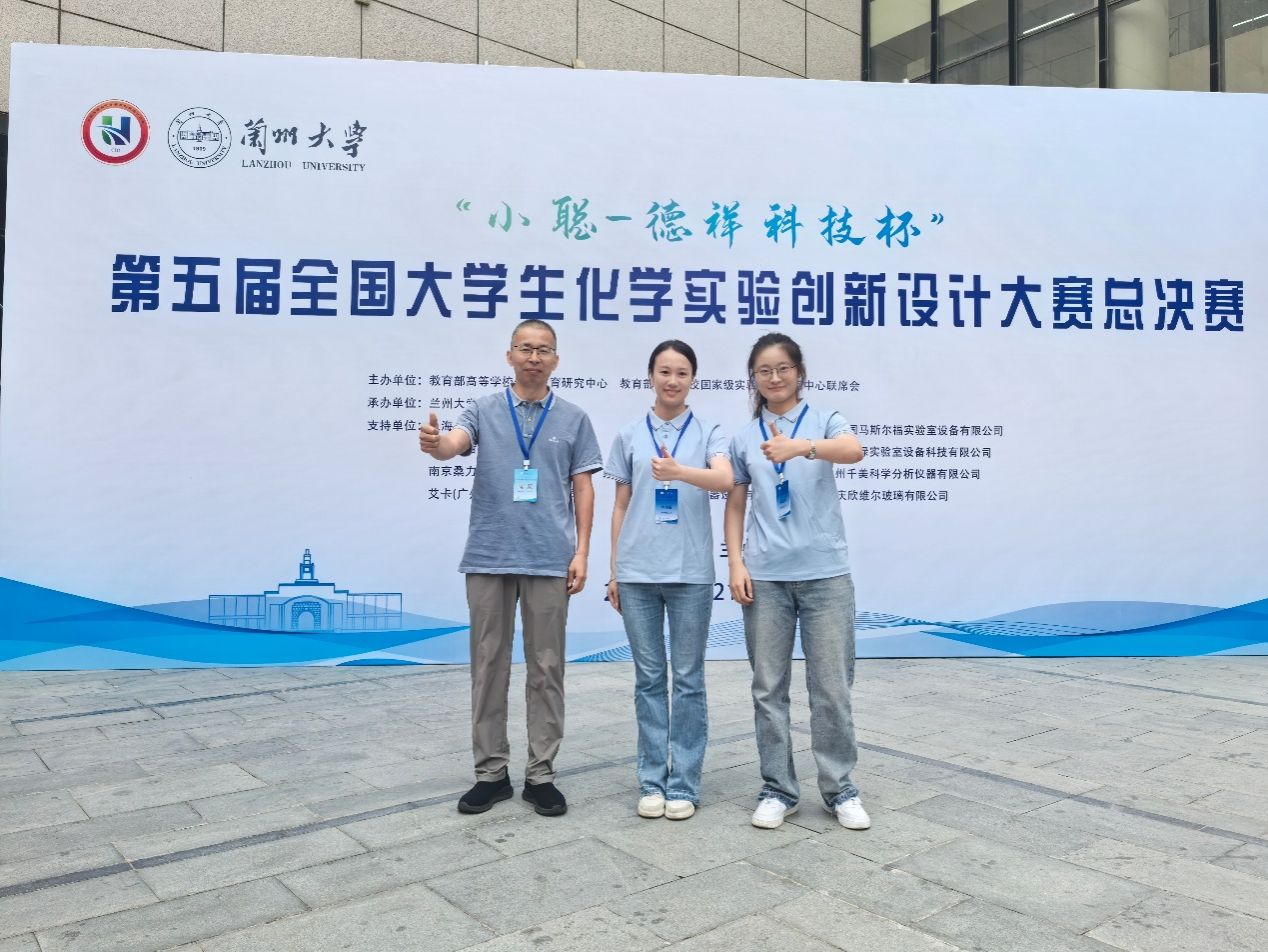 (通讯员 吴琼友)2025年8月21日至24日,由教育部高等学校化学类专业教学指导委员会、中国化学会化学教育专业委员会主办,兰州大学承办的“小聪-德祥科技杯”第五届全国大学生化学实验创新设计大赛总决赛在甘肃兰州顺利举行。我校由李佳昕、韩昕冉、康誉菡组成的新创实验队,在吴琼友老师的指导下,凭借扎实的专业知识、严谨的实验设计和出色的现场答辩表现,荣获二等奖的优异成绩。