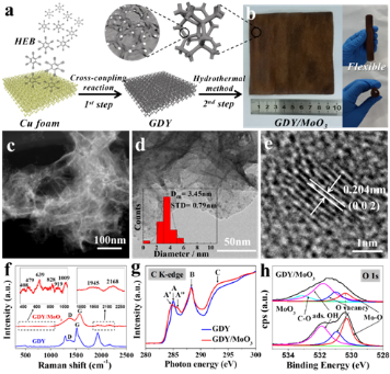 图2. GDY / MoO3的合成和界面结构表征