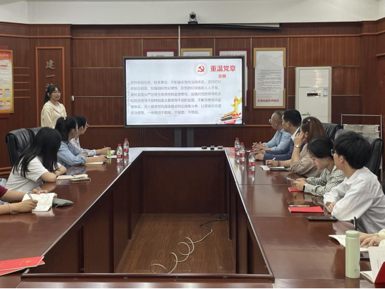 活动伊始,全体与会同志起立,奏唱国歌,重温入党誓词。全体同志一起重温并学习《中国共产党章程》的总纲中关于“坚持从严管党治党”的内容以及《中国共产党章程·党的纪律》部分条例。
