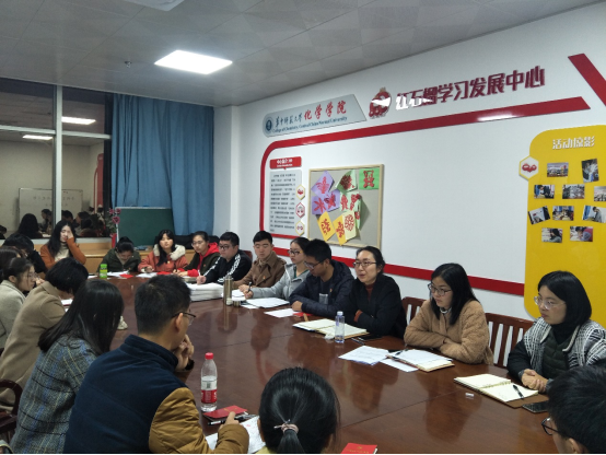 新闻中心消息 通讯员 章家瑜12月14日晚,华中师范大学化学学院本科生红石榴党支部“不忘初心,牢记使命”主题教育专题组织生活会和民主评议党员大会在逸夫化学楼H303B举行。化学学院党委副书记徐芬、化学学院本科生红石榴党支部指导老师聂敏、党支部书记武双欣、辅导员孙煜林以及本科生红石榴党支部全体党员同志参加了本次会议。本次会议由党支部书记武双欣主持,民主评议党员大会按照“个人自评、党员互评、民主测评”的程序开展,旨在加强党支部建设,加强对党员的教育、管理和监督。