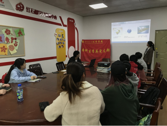 新闻中心消息 通讯员 陈腾瑛11月20日中午,华中师范大学化学学院本科生菁英党支部十一月主题党日活动在化学楼303B顺利开展。本科生菁英党支部书记马莹老师及本科生菁英党支部10名党员同志参加了本次会议,由史计策担任主持人。本次党日活动旨在学习《中国共产党基层组织选举工作条例》,并依此展开党员政治素养诊断和党支部诊断,自我反馈、集体评议查找问题和不足。同时,党日活动结合了本支部的专业特色,通过7-8分钟的报告,供大家共同交流学习,分享收获。