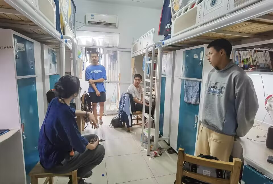4月23日,兼职辅导员张沛铭老师前往东区四栋男生宿舍走访。他询问学生物化考试情况,大部分同学认为考试难度不大,不会出现不及格情况。同时,由于近期降温,张沛铭老师提醒同学们注意增减衣物,以免生病感冒。