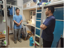 525日晚,兼职辅导员张沛铭老师前往东区4栋男生宿行查寝,整体情况良好。由于即将期末考试,大部分学生在寝室学习,学生表示部分科目较难,存在一定压力,担心挂科,他对学生进行了安抚和指导。