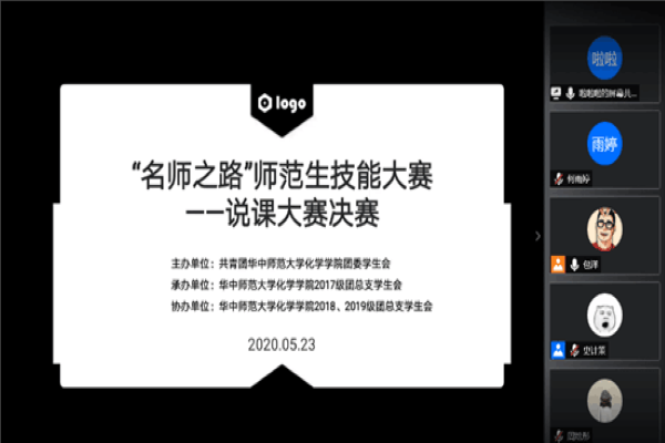 新闻消息中心 通讯员 何雨婷5月23日晚,华中师范大学化学学院 “名师之路”师范生技能大赛之说课比赛决赛在腾讯会议平台上拉开帷幕。本次活动由共青团华中师范大学化学学院委员会主办,化学学院2017级团总支学生会承办,旨在提升化学学院师范生的说课技能,提升师范生的综合素质。出席本次比赛的嘉宾和评委有化学学院副教授邓阳、2017级辅导员安晓蕾、研究生许曼琪、白云、姚晗。2017级年级主席史计策担任本次比赛的主持人。经过各班、各年级的选拔推荐后,17位选手进入了本次决赛,通过抽签确定了各自的说课题目。