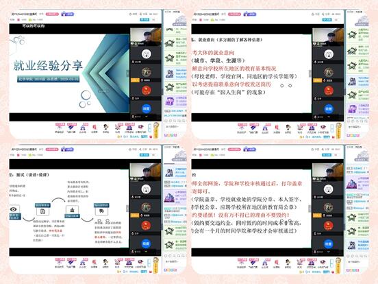 三位优秀的学长学姐分享结束后,同学们纷纷在弹幕区表示受益匪浅,并向他们提出了自己的问题,主要是针对初高中如何选择,心仪学校如何联系等,主讲人们也对此进行了一一解答。其中,对于如何确定自己是适合初中教学还是高中教学这一问题,夏瑞雪回答道,最好的方法是家教,通过家教熟悉课本,并了解初高中教学模式的差异,再做出选择。针对如何提前联系意向学校的问题,孙浩然建议在做好充足功课的前提下,可以通过学习往年的招聘信息中的电话或邮箱联系学校的老师或招聘办公室。