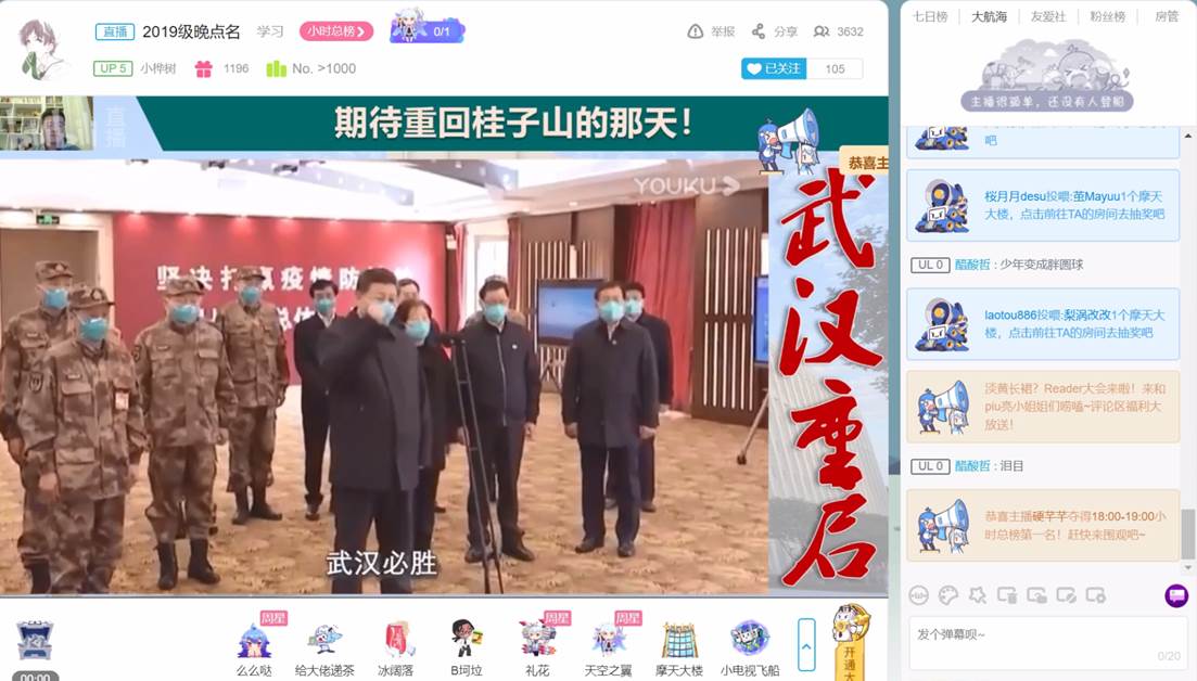 本次晚点名的最后,张老师对此次忧患意识主题教育的内容进行了总结,并通过视频,向同学们展示了武汉抗击疫情的重生过程,不少同学表示十分感动。武汉已经重启,希望我们能够早日接到学校的正式复学通知,期待早日在桂子山重聚。