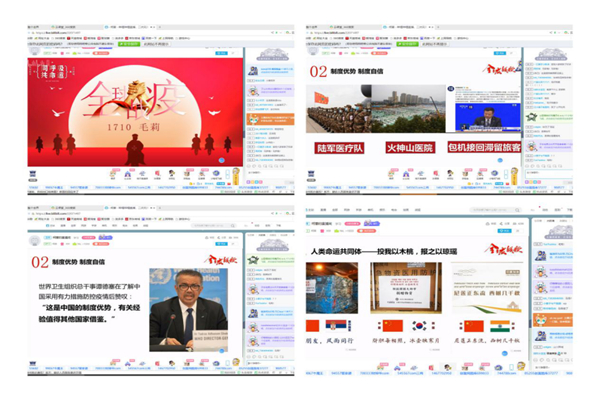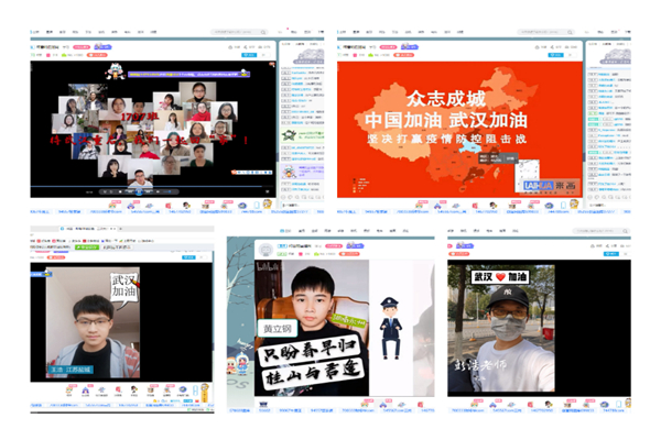 活动伊始,主持人播放了各班级以“同心战疫”为主题制作的视频,虽然各班风格不一,但都抒发出同学们迫切想要回归校园的心情,也表露了大家对全世界人民统一战线同心战疫、共克时艰的信心与决心。