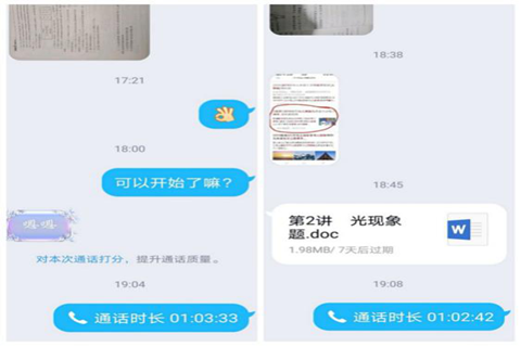 结合自身学习经验,刘星雨利用视频、文字等多种形式,为小梦(化名)进行各门科目的课程辅导。她在尽量不影响小梦原有复习节奏的前提下,针对中考备考冲刺各项知识点进行查漏补缺,对复习中小梦遇到的各类问题耐心地答疑解惑,并分享自己的学习方法和备考技巧。作为一名应用化学专业的学生,刘星雨也面临着较大的在线学习课业压力。对此,她便提前和学生确定辅导时间:在周一周二和周四进行1个小时左右的线上讨论和答疑。面对志愿工作与学业产生的冲突,刘星雨会尽可能在周六周日以及其他零碎时间完成自己的学业任务,以保证志愿者工作和学业的有效进行。