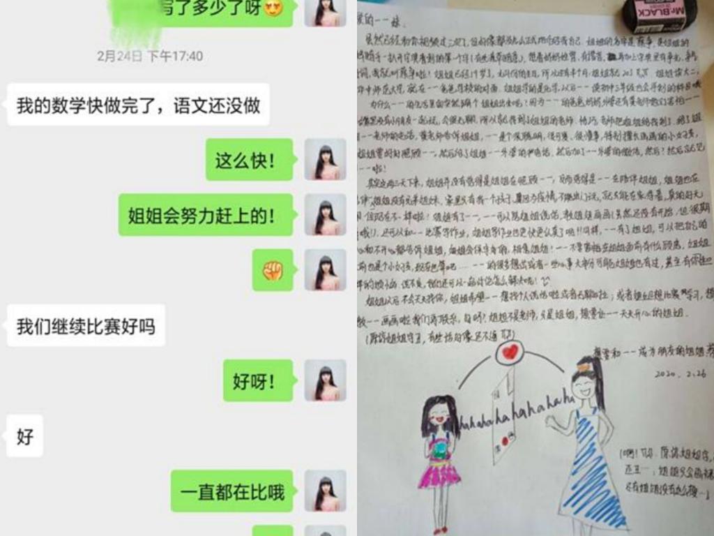 春晚朗诵节目《爱是桥梁》中说道:“隔离病毒,但是绝不会隔离爱。”蔡争用实际行动做到了。在参与抗“疫”一对一学业辅导志愿活动的过程中,蔡争结识了一个特别的武汉小女孩。小女孩的妈妈一直奋战在抗疫一线,与死神争分夺秒地斗争;爸爸在外地出差,因为武汉封城而回不来。陪伴她的只有年迈的外婆。蔡争要给予她的不仅仅是学业上的辅导,更多的是心灵上的陪伴和安慰。在初次学业辅导结束后,蔡争发现她性格内向、对学习有抵触情绪。后来,蔡争改变策略,用热情和阳光一点点温暖她的心。小女孩渐渐变得开朗起来,她们俩也变成了无话不谈的好朋友、好姐妹。