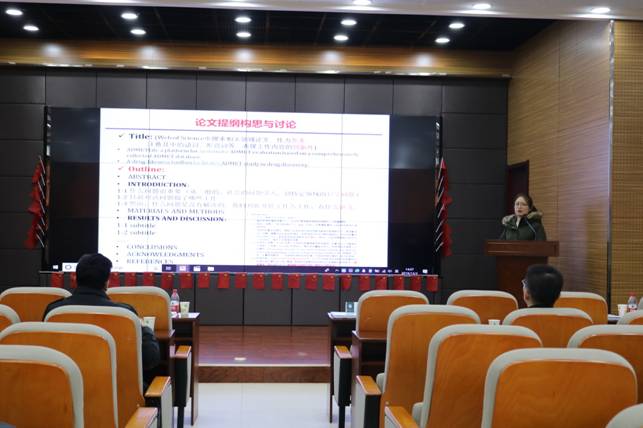 论文写作不是一蹴而就。硕士研究生贾辰阳给与会学生分享了论文写作的方法,同时还强调了论文写作需要注意的细节。写作之前,查阅文献,构思论文提纲。写作过程中,利用“夹心式”方法,在段前和段后强调突出重点内容;此外,语言表达准确和论文格式规范需要注意。写作完成后,准备投稿文件之前,查阅投稿杂志的要求。贾辰阳通过分享发表三篇科研文章的亲身经历,为在场各位总结了又快又好的科研写作方法。