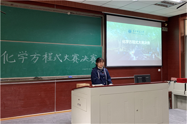 新闻中心消息 记者 王平春 李睿11月23日上午,第十一届化学周系列活动之化学方程式大赛决赛在逸夫化学楼101教室成功举办。此次大赛由共青团华中师范大学化学学院委员会主办,化学学院团委社团部承办,旨在激发大学生学习化学的兴趣,培养学生灵活运用化学知识的能力和团结协作能力。在本次方程式大赛中,有19支队伍从参与初赛的60支队伍中脱颖而出。其中,有4支队伍来自其他学院。化学学院团委书记马莹作为嘉宾出席了此次大赛,本次大赛由社团部助理梁冉主持。