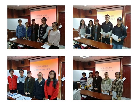 (通讯员 程玏)11月9日18:00在理科实验楼327进行了19级化生班大学规划签约仪式,化生班班主任、化学学院教授冯玲玲、辅导员孙煜林以及冯玲玲教授课题组研究生、19级化生班全体学生均参与了本次活动。