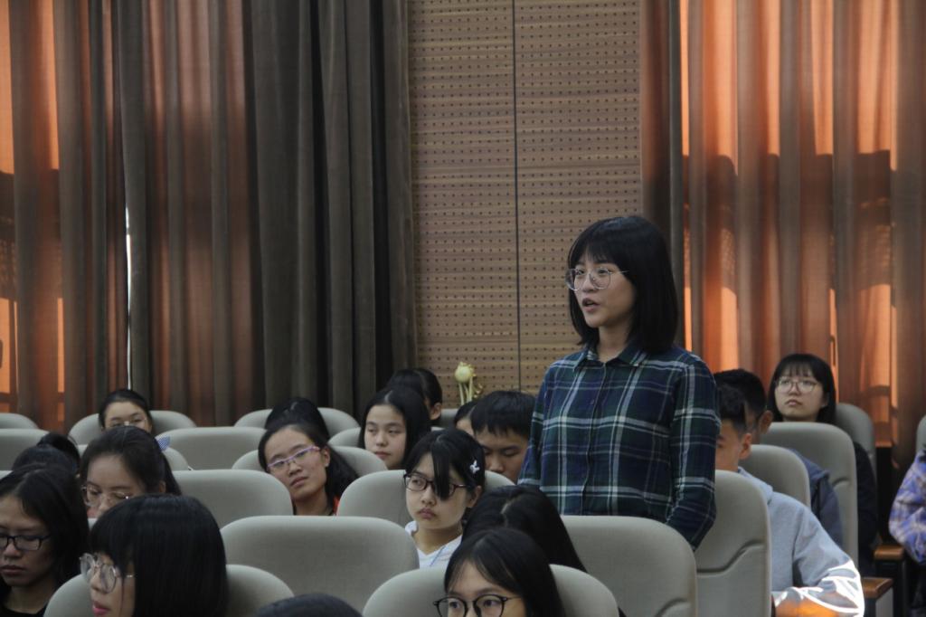 随后,徐芬通过解析五四运动100周年大会上习近平总书记对于新时代中国青年的六个期望,来进一步阐释学生干部应该具备的综合素质:学生干部的初心是将个人梦想与中国梦紧密结合,提高执行力,理论结合实际。学生干部是学生中的骨干,首先要提高专业学习素养。其次要定位准确,不仅自我发展,同时带动和服务其他同学,提高学院凝聚力。最后,徐芬对学生干部和助理提出了寄语:“希望你们能做到德才兼备,真正成为社会主义建设者和接班人。”