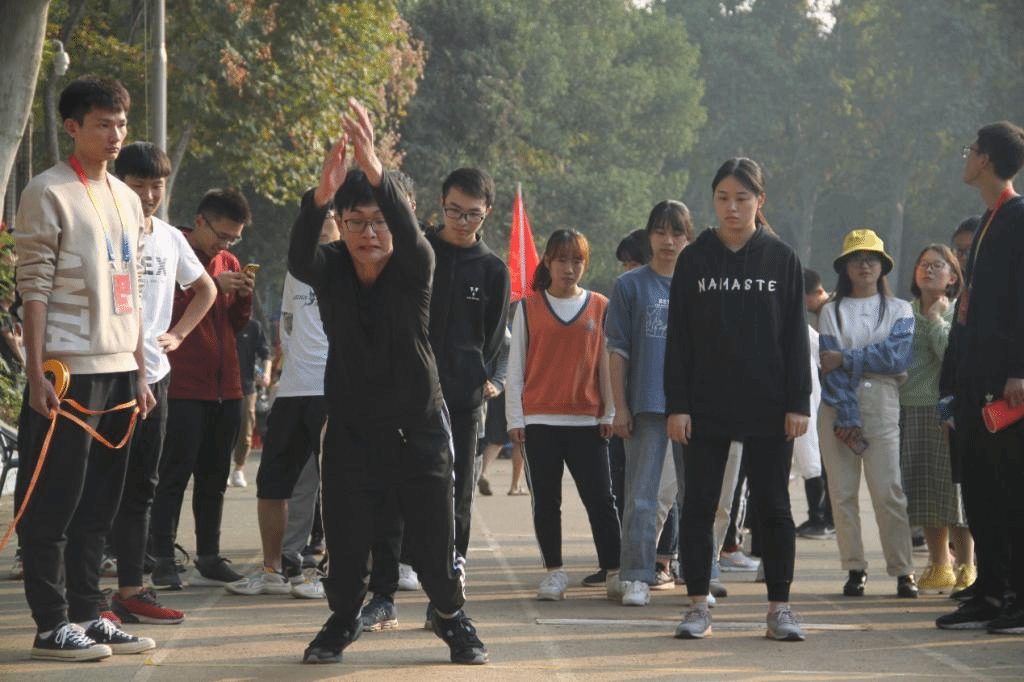 赛前,深秋午后的阳光洒在佑铭体育场上,化学学院混合组立定跳远参赛队伍已经在化院大本营集合并清点人数。由于出场顺序靠后,不少队员仍反复地进行着最后的训练,希望在赛场上能够赛出水平。