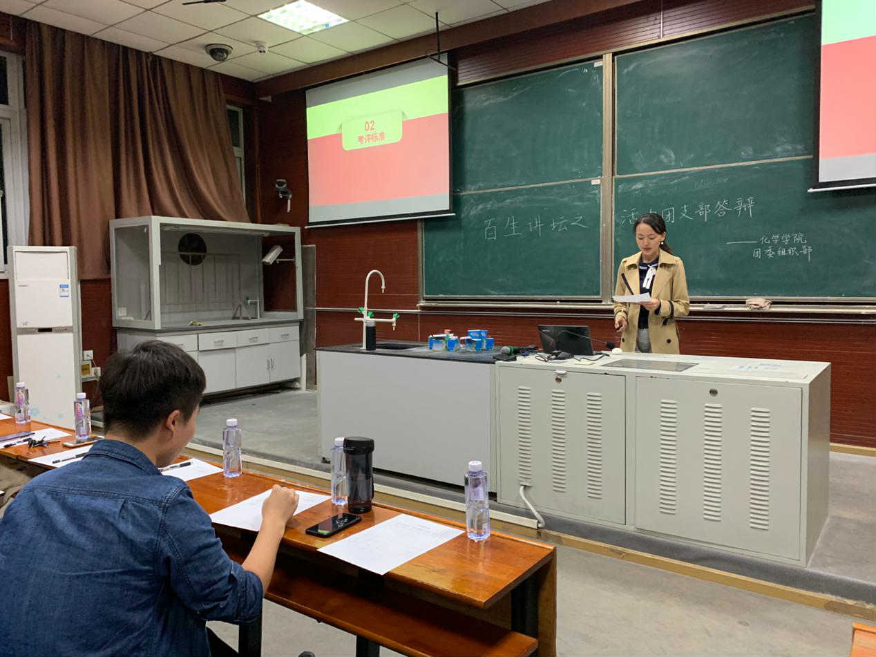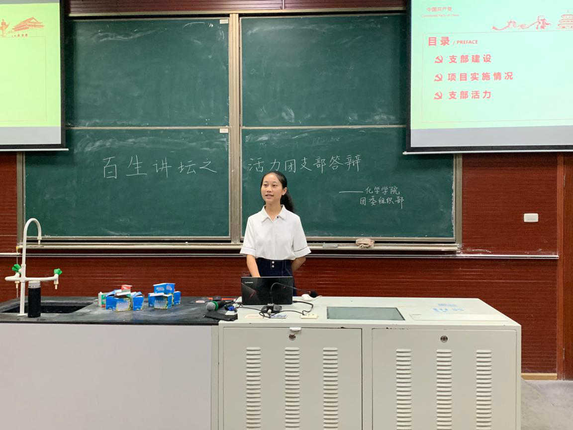 新闻中心消息 通讯员 李安琪 李睿10月12日晚,华中师范大学化学学院活力团支部答辩活动在逸夫化学楼201教室顺利举办。化学学院院团委书记马莹,化学学院17级辅导员安晓蕾,化学学院19级辅导员武双欣,化学学院17、18级兼职辅导员王思琪,化学学院19级兼职辅导员张栩晨出席活动并担任评委,华中师范大学化学学院部分班级团支书作为代表前往现场观摩学习。此次活动旨在展现活力团支部风采,宣传并加强各团支部建设。