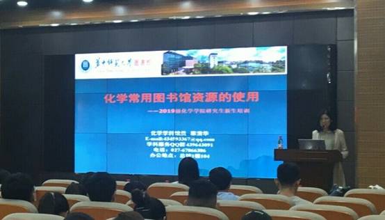 研会宣传部讯 通讯员 杨金梅、徐嘉彬 9月27日上午10:30,化学学院邀请了图书馆辜清华老师在新化学楼八楼报告厅为19级研究生新同学介绍“如何使用化学常用图书馆资源”。讲座由化学学院研究生辅导员王月主持。
