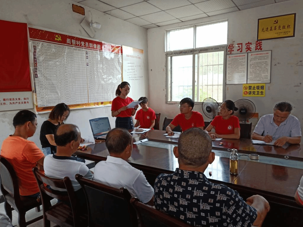 会议最后,实践队队长卢乙鑫对本次实践活动进行了一个简单的总结,周帮村支部书记对党员先锋实践队的工作表示肯定。姚庆晨表示:“本次活动是党员先锋实践队第一次集体参与的党日活动,我们在实践中增强党性修养、促进自身全面发展,同时希望我们的工作能够给周帮村的村民以及孩子带来积极的影响,帮助他们更好地建设乡村。”