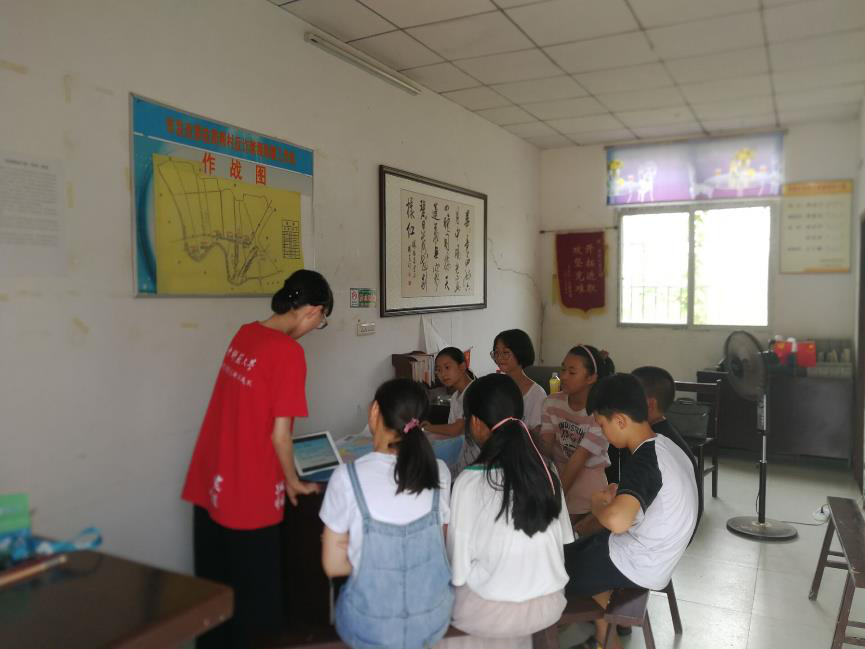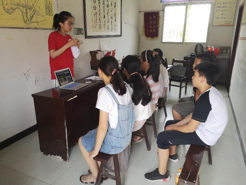 新闻中心消息 记者 张柯昱 8月25日,华中师范大学化学学院党员先锋实践队在来到湖北省仙桃市长埫口镇周帮村后,发现学生因当地教育条件的限制,对当前世界前沿技术和地理环境的认识有限。基于以上情况,实践队队员刘怡琳和韦迁云分别为学生带来科学课和地理课,旨在丰富学生的学科知识,拓展其视野。