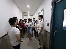 接下来,同学们分成了六组,由两位毕业于华中师范大学校友带领参观了药明康德新药研发实验室,使同学们了解到了更多化学实验高端仪器,这让同学们发出阵阵惊叹。加之校友学长的介绍,同学们对各种仪器及其作用有了更多的了解。尽管是星期六,但仍有不少兢兢业业的工作人员在继续做研究。看到了勤奋工作的他们,同学们暗自下定决心,一定要和他们一样认真工作、努力学习,为中华民族的伟大复兴做出自己的贡献。