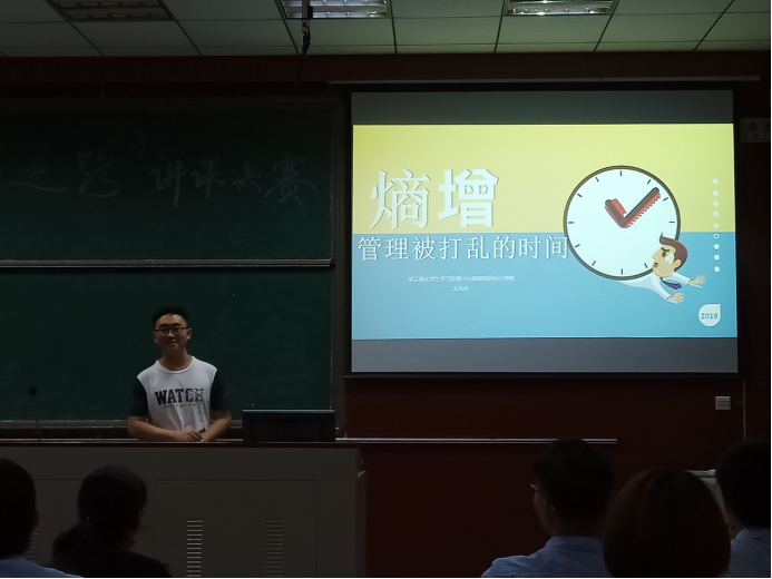 新闻消息中心 通讯员 何雨婷 5月26日晚,化学学院2017级全体学生在逸夫化学楼101教室开展学风建设月活动,邀请了我校大学生学习发展中心明德小导师——数学与统计学学院2017级本科生文舟舟做了题为《熵增——管理被打乱的时间》的专题分享。
