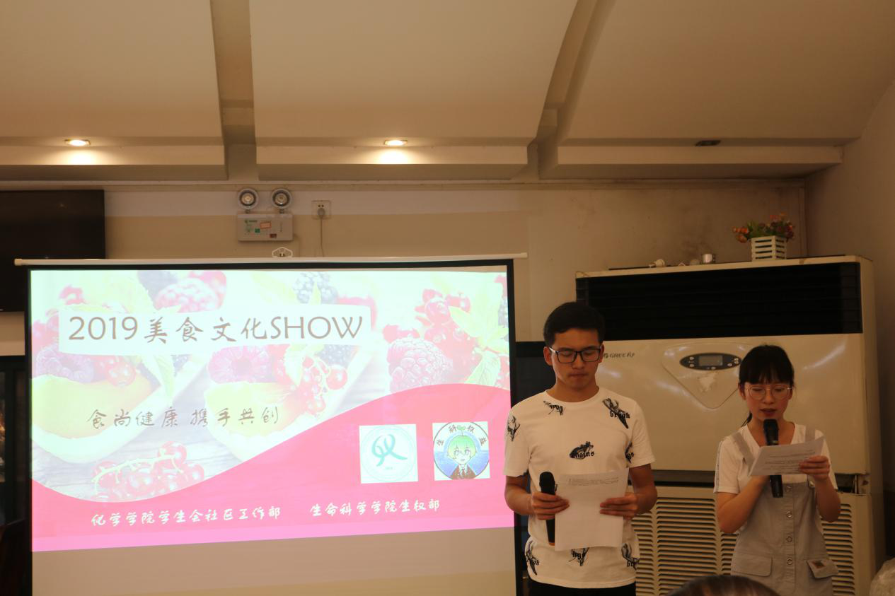 新闻中心消息 记者 王舒晴 张柯昱5月11日晚,由化学学院学生会社区工作部、生命科学学院学生会生权部联合承办的2019学风伴我行之美食文化SHOW活动在学子餐厅二楼顺利举行。活动旨在丰富同学们的课余生活,倡导大家珍惜劳动成果,尊重劳动人民,弘扬并传承中华民族博大精深的饮食文化。出席本次活动的嘉宾和评委有化学学院兼职辅导员刘鹏、生命科学学院学生会团委学生会主席颜婉琳、化学学院学生会主席熊鑫乙和副主席彭琳茜。