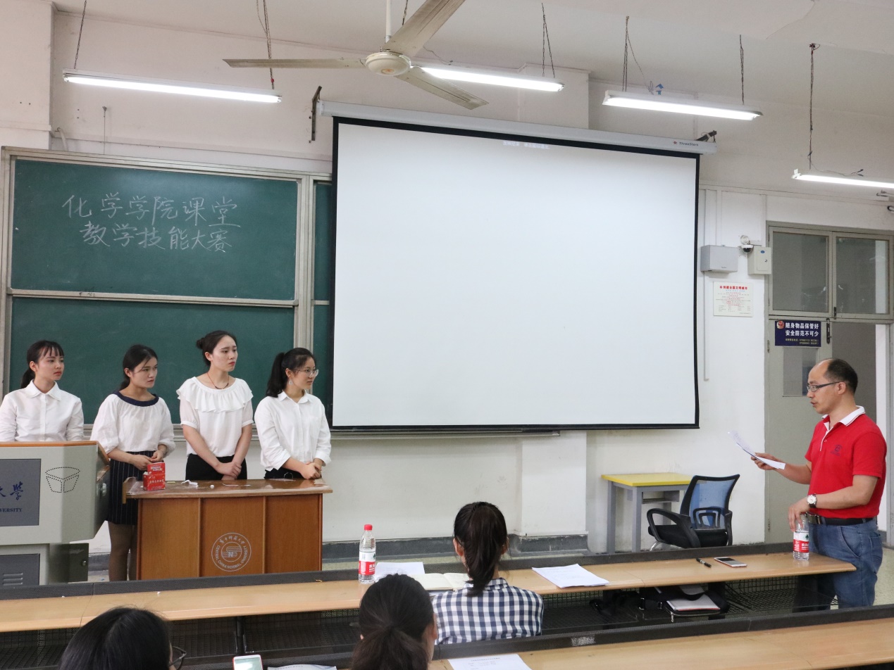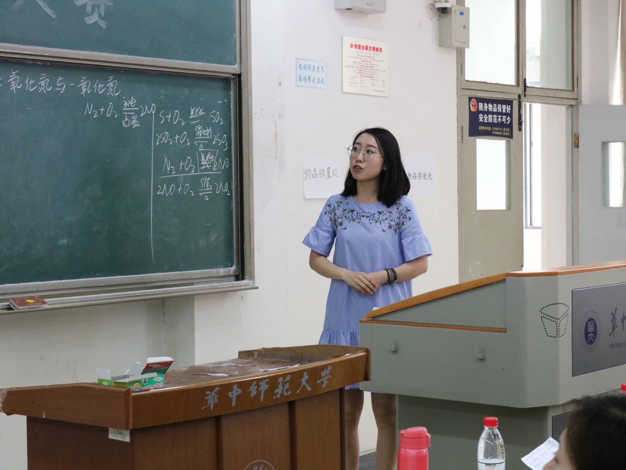 新闻中心消息 记者 刘意 毛莉6月9日下午,师范生课堂教学技能大赛在8211、8310两个教室同时进行。此次活动由共青团华中师范大学委员会主办,华中师范大学未来教育家联盟承办,共青团华中师范大学化学学院委员会协办,活动对象为化学学院2015级、2016级本科师范生。本次比赛旨在促进师范生教育教学能力的提高,培养我院师范生高尚的师德、先进的教学理念、扎实的教学技能,并为第八届湖北省普通高校师范专业大学生教学技能竞赛选拔优秀选手。