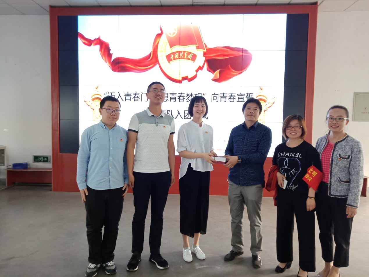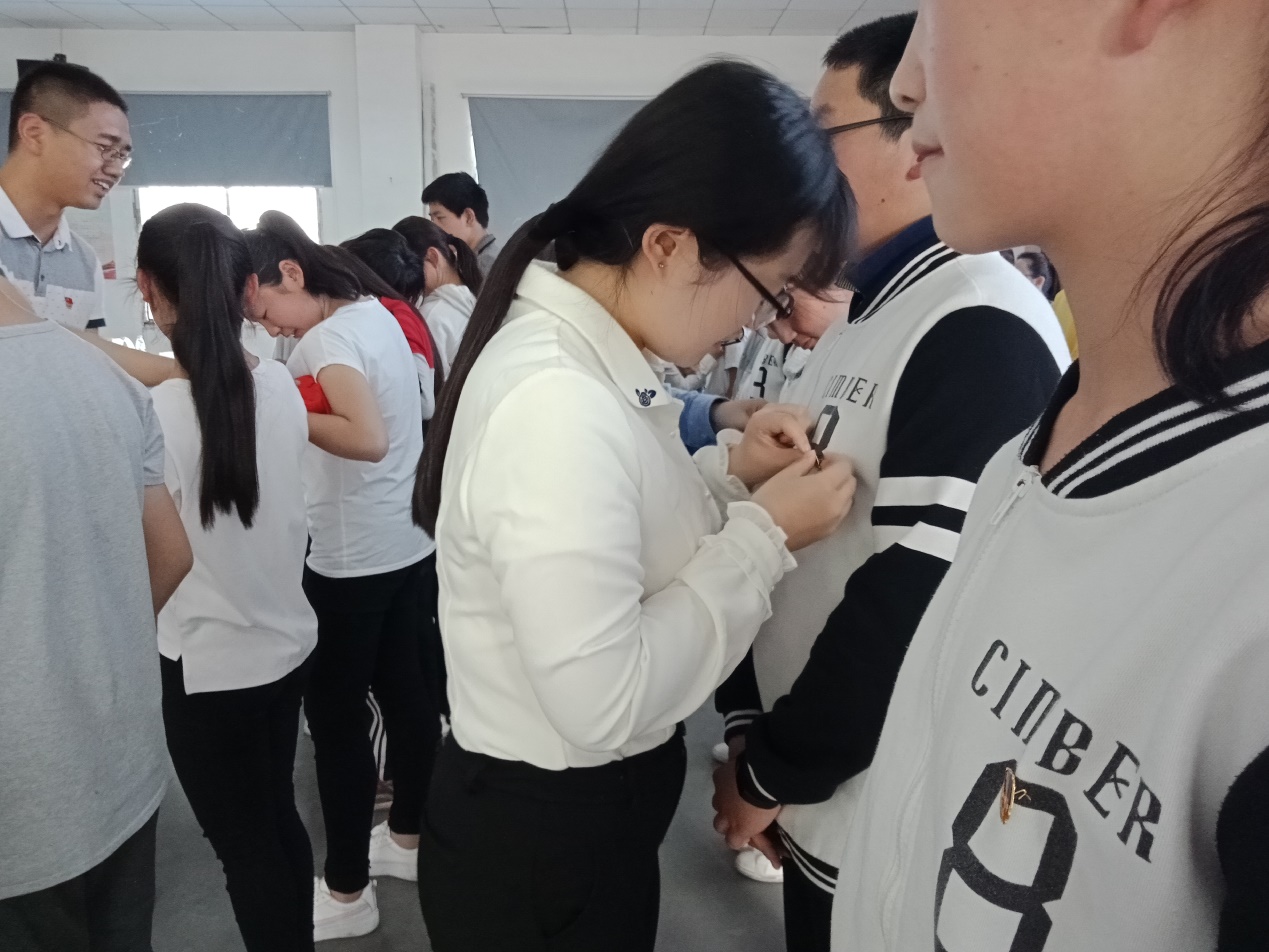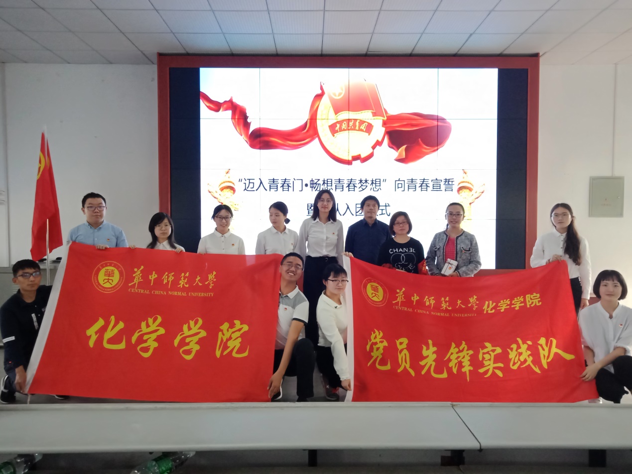 活动过程中,张家铺小学初中部同学们精彩的歌舞及小品表演,展现出他们朝气蓬勃的模样。在全体起立唱完国歌后,主持人周小倩宣布了张家铺小学2018年入团成员名单。新团员有序地上台后,先由张家铺小学的领导给他们颁发退少先队员的结业书,再由化学学院代表给新团员们佩戴团徽。佩戴结束后大家举起右手庄严宣誓。