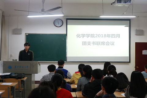 宣传中心消息 刘意 刘阳春4月14日晚,华中师范大学化学学院四月团支书联席会议于6207教室召。化学学院团委副书记张洁,化学学院团委组织部部长徐浬,副部长乐巧媛、夏雅蓓,组织部全体助理以及15、16、17级各团总支、组织部长、团支书参加了本次会议。本次会议由组织部助理李世林主持。