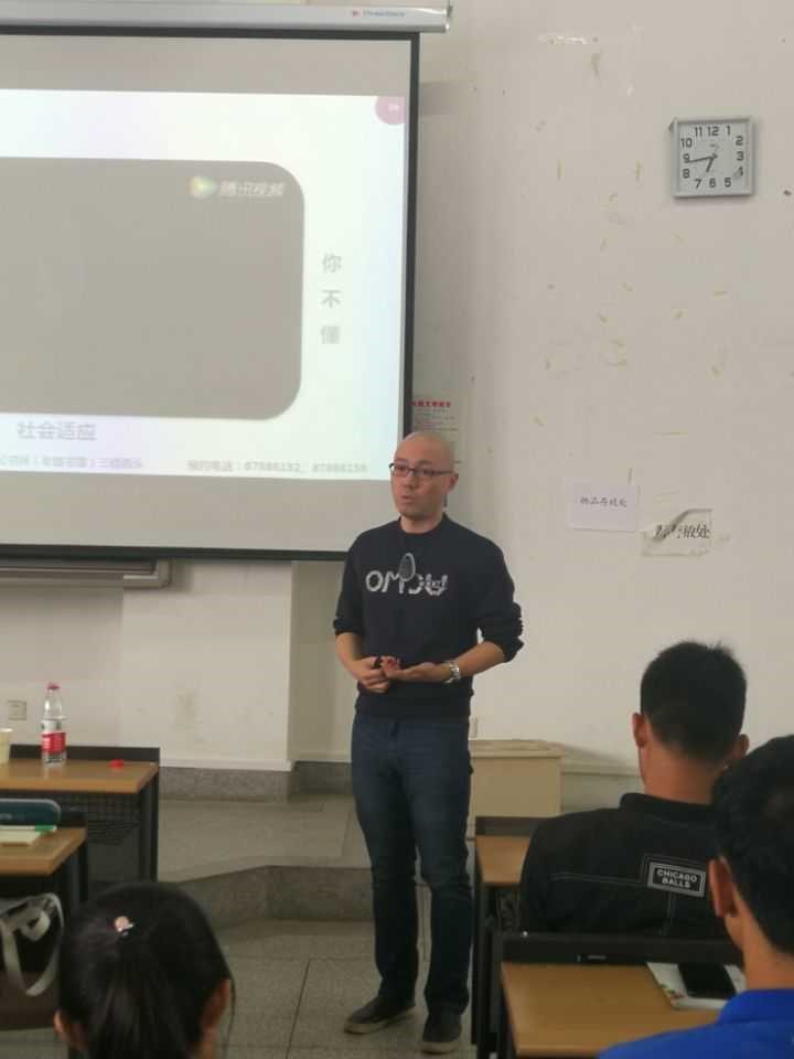 随后,余海军老师通过对华中师范大学地理位置的解读和对短视频的播放勾起了同学们心中的那份乡愁,后又从“自我探索”、“专业学习”、“人际关系”、“生涯发展”、“社会适应”等方面为新生讲述了理想大学和现实大学之间的差别,并提出“同学们要去学习生活基本技能,尽快适应独立自主的大学生活。”