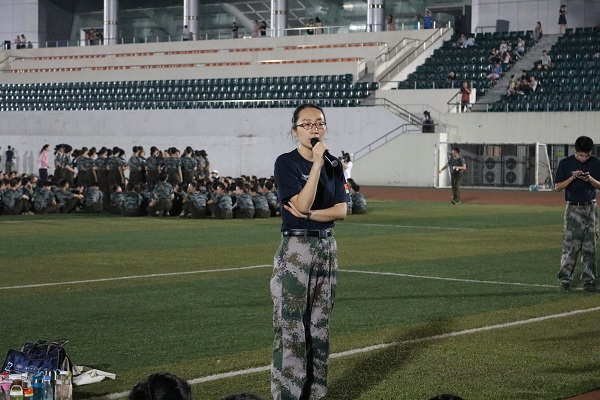 随后,化学学院党委副书记徐芬为新生讲话。徐书记提到,大学是一个新的起点,所有人都回到了同一条起跑线,但四年后却有人会遥遥领先。这一切都源于自身的努力与刻苦的精神。徐书记说:“大家可以看看,暑假期间哪一栋楼熄灯最晚?哪一栋楼亮灯亮的最早?那一定是逸夫化学楼。那是我们的老师们,我们的学长学姐们在挑灯夜战。那是在为他们个人,为学院,为学校争创荣誉。希望你们能够继承他们的精神,确立目标并为之奋斗,真正成为‘尖刀九连’。”徐书记还借“香港高校港独事件”提到,我们作为中国共产党的后备力量,要明白自己身上的责任。各位同学是中国新一代的力量,希望大家能带着这样的心态,走好未来的每一步。