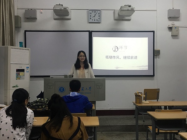 本次团日活动主要分为两个阶段。在活动的第一阶段中,团支书熊鑫乙带领支部成员一同学习了习近平总书记系列讲话中所引用过的经典,并简要讲解了有关党代表的权力与职责等方面的问题。同时,化学学院1603团支部与重庆三峡学院数学与统计学学院16团支部同学通过直播平台进行现场互动,两支部同学通过网络平台就党的精神等话题进行了讨论。