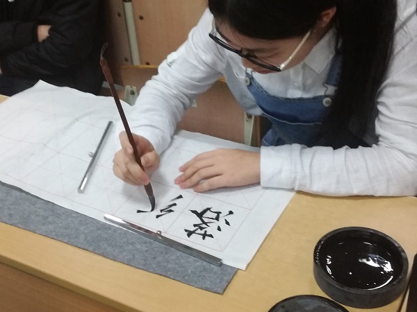 在欣赏完几位同学的书法作品之后,同学们开始书写自己的作品,并且相互之间交换欣赏点评了彼此的作品,提出了自己的建议。