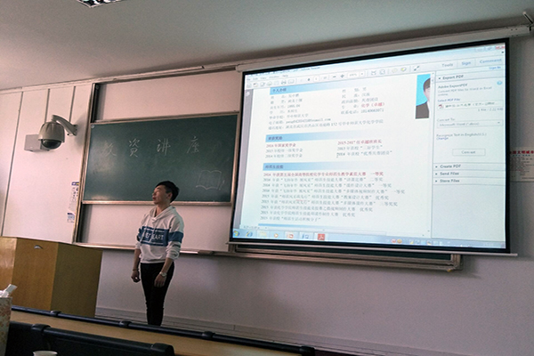 吴中鹏学长首先将自己的简历展现给我们,看到学长的成长历程,明白有付出才会有回报,大学是一个很好的提升自己的机会,大学四年有可能影响我们整个的人生,也是为踏上工作岗位打好基础。