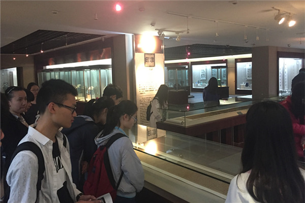 早上八点半,1506班的同学们在新图书馆阳光大厅门口集合,由组织委员林露带领同学们进入本次活动将要参观的华中师范大学文物馆。文物馆分为石器、青铜器、玉器、造像、书画、陶瓷、印章、钱币和鼻烟壶九个展区,由文物馆的讲解员为同学们注意讲解每一个展区的藏品。