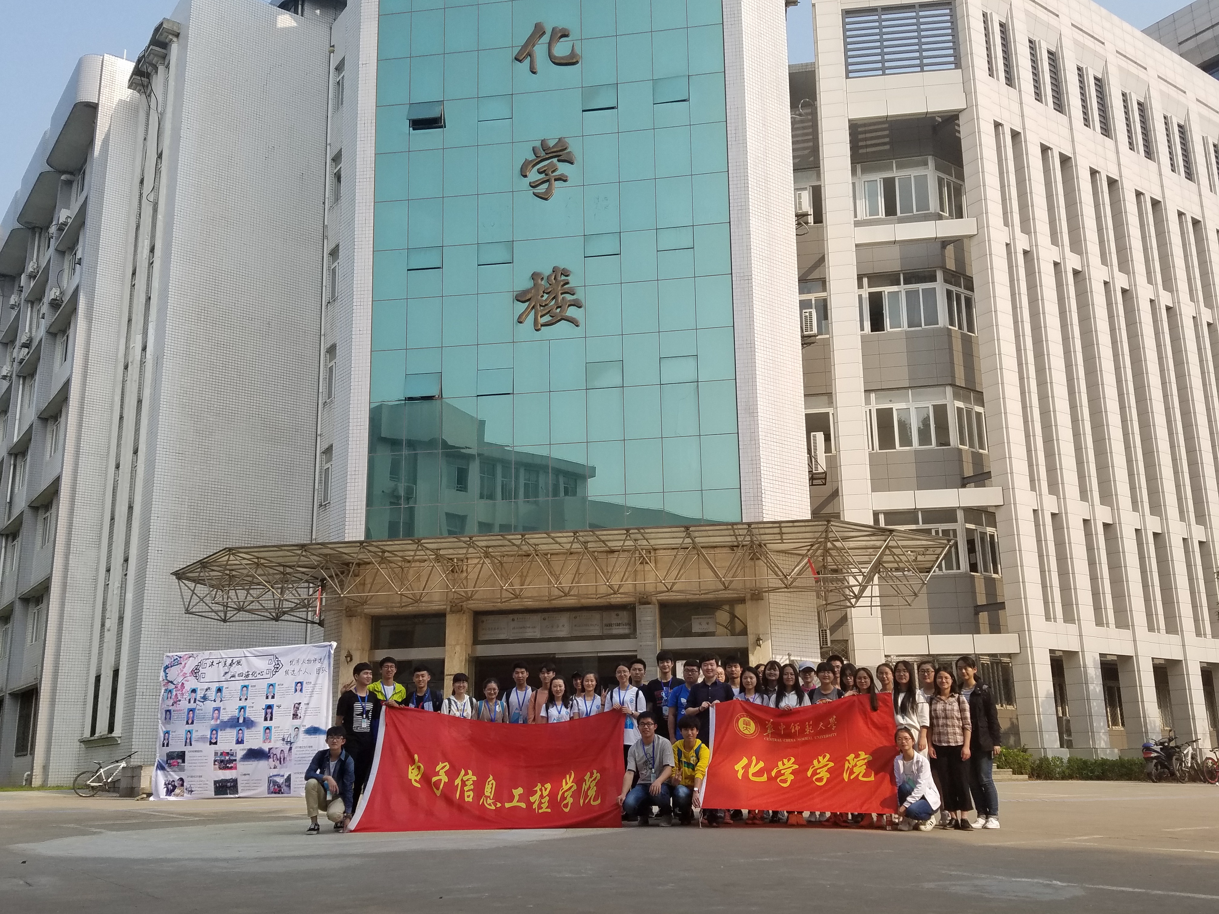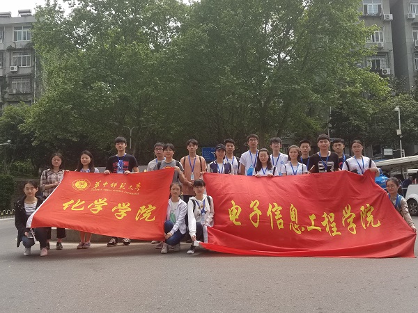 民大电信院学生会走访团抵达华师后,化院外联部干事接待了民大走访团,并于校门口处合影留念,随后,一行人步行至9303开始交流会议。