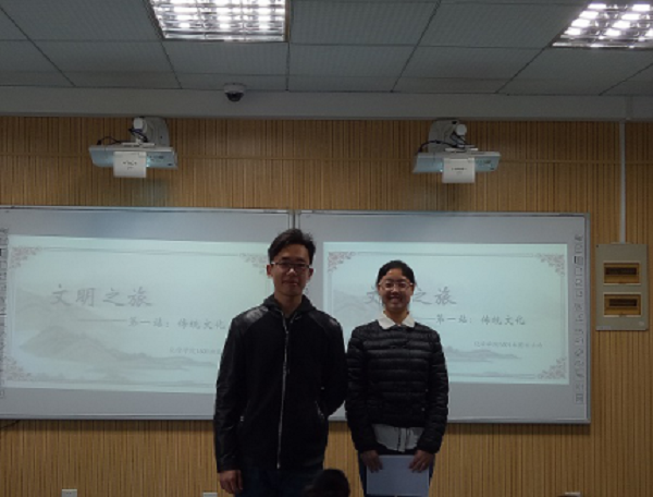 选出飞花令的优胜者们之后,主持人抛给了大家一个问题:传统文化正在腾飞还是衰败?这个问题引起了同学们激烈的讨论。有同学认为是衰败的,并举出了如:端午节被韩国申遗,近年禁鞭等例子。而有的同学则认为是在腾飞的:中国已经开始重视传统文化,而且孔子学院遍布全球。最后,原弘老师进行了总结:文化是在不停演变的,一些传统的出现与消失,都是文化的一部分。