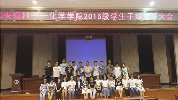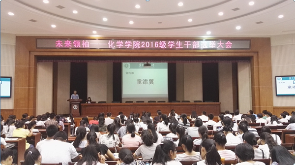 新闻中心消息 通讯员 刘诗雨24日中午,以“未来领袖”为主题的化学学院2016级新生年级干部竞选大会在科学会堂一楼报告厅举行。参加本次会议的有化学学院2016级辅导员聂敏、2016级各班学生班主任以及全体化院新生。