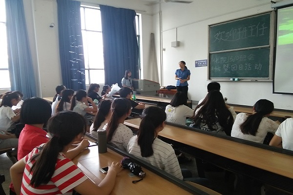 团支书陈素捷简短的开场白为此次活动拉开了序幕,在全班同学热烈欢迎的掌声中新上任的1510班班主任高婷娟走上了讲台,高老师向同学们讲述了她的求学简历以及工作经历,向同学们提出了不少建议和期望。她尤其指出了我们大学生应当有至少一个自己的兴趣爱好,特别是需要一个体育方面的爱好。高老师说道:“我们的学习及生活都会有压力,而体育活动不仅能帮我们释放压力,还能够强身健体,保持心情愉悦。”并向同学们分享了她自己学习羽毛球的过程、心情和成果。