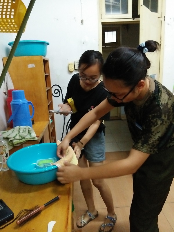 新生们初次背上行囊远离家人,离开父母长辈的呵护,寝室就是他们在大学的第一个小家。本次的内务指导活动不但新生们充分体会到了寝室作为一个学习、生活的重要场所,保持其舒适、整洁、和谐的重要性,还促进了新老生之间的交流和互动,让他们感受到化学学院作为一个大家的温暖。内务指导后,志愿者游晓宇感叹道:“学妹们很可爱!以前学姐来指导我们内务,我们也是一脸‘绝望’,如今学妹们也是,军训内务也是进入大学的第一步,希望学妹学弟可以按照学院要求来做,我们一起好好加油!”