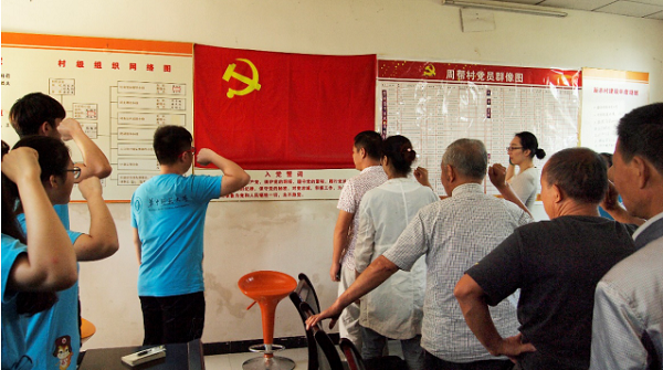 会议伊始,由实践队队员陶前志带领全体与会人员重温入党誓词。“再次宣读入党誓词,好像入党就在昨天。”在接受采访时,今年已有50年党龄的周小得老同志感慨道,“这短短的80个字承载着的是我们党人对党和人民一辈子的承诺。”