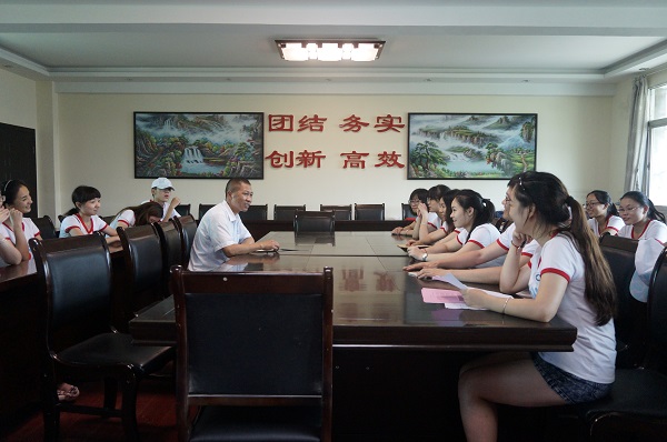怀着几分激动和憧憬,我们到达了八岭山中学,受到了罗校长和李主任的热情欢迎。为了使实践活动顺利地进行,罗校长就这次实践活动和队员们开展了简短的会谈。一方面。他代表学校欢迎我们到八岭山中学开展暑期实践活动;另一方面,他也向队员提出四点要求。一、希望队员们能有序安排实践活动,有针对性侧重性地登记学生信息。二、安全第一,加强自我保护意识,注意防暑防雨。三、将生活和锻炼有机结合,充分利用学校里的运动设施。四、加强联系,遇到问题时与负责人联系。队长陈思羽和指导老师彭浩也特别感谢了校方的热心招待以及志愿队队员们前期辛苦的付出,她表示今年志愿队是面向全校招新的,相较往年,志愿队队员们的质量更高,支教时间更长,所发挥的作用也就更大。最后,校长向同学们建议道:“因为大部分孩子都是留守儿童,如何帮助他们呢?关键就是要把握学生的心理和学业。”