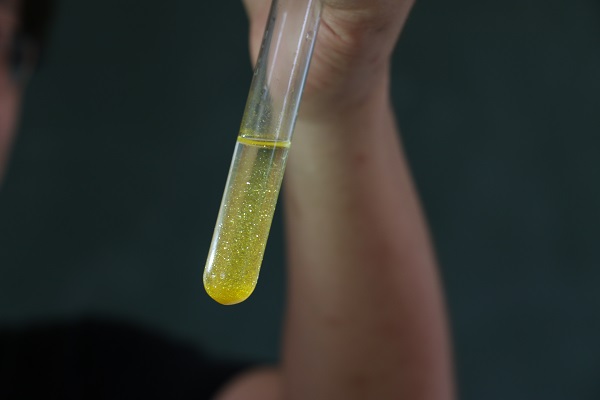 其中,“黄金雨”实验最受学生欢迎,碘化铅溶液加热再冷却后形成黄色的亮闪闪的“小星星”,引得学生们不禁唱起了儿歌:“一闪一闪亮晶晶,漫天都是小星星”。