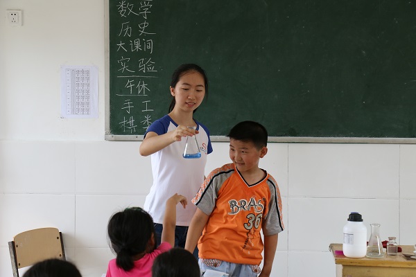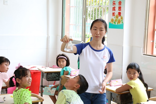 对于实验课程设置的初衷,博雅行知支教团副队长王万领介绍道:“博雅行知支教团的队员大部分为化学学院学生。我们希望在这次的支教活动中,队员们能够结合自身所学的专业知识,通过一些趣味的化学小实验,引起学生对科学的兴趣。”