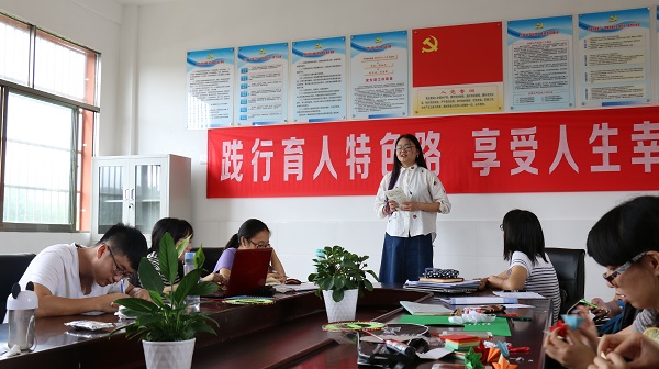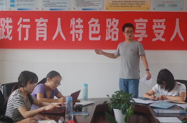 新闻中心消息 通讯员 陈嘉敏7月5日,博雅行知支教团在湖北省黄冈市蕲春县铺咀小学会议室进行了集中备课与部分课程试讲。队长任有祯随机抽取成员根据备课内容进行试讲,其余成员则模拟课堂情景进行配合与提问,并在试讲结束后对该成员的课堂效果进行评价与提出建议。此举旨在通过群策群力,发现并完善队员在讲课过程中的不足之处,提升实际课堂效果。