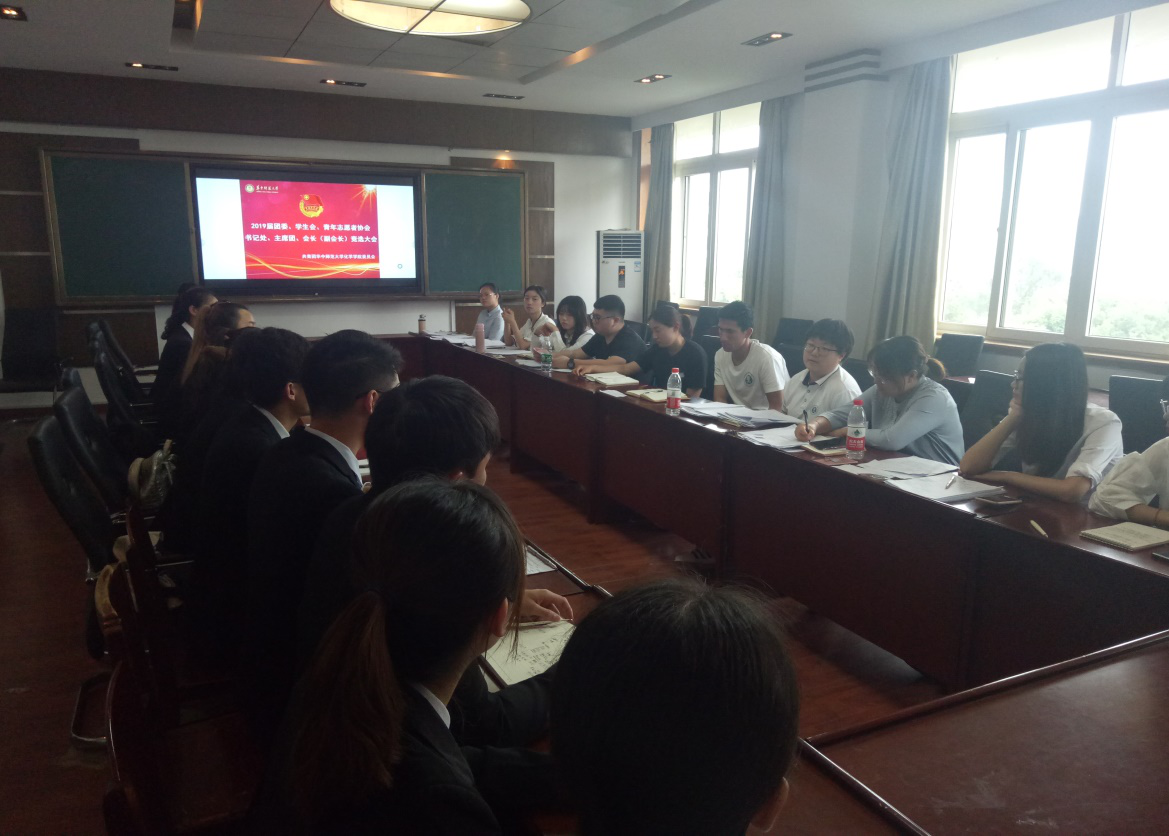 化学学院2019届团委书记处、学生会主席团、青协会长、副会长竞选大会圆满结束,相信新一届的化学学院团委、学生会、青年志愿者协会骨干会成为一个有战斗力、凝聚力的集体,更好地为化院同学们服务。