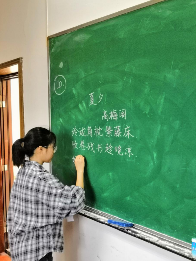 化学学院“名师之路”钢笔字书写大赛、粉笔字书写大赛和板书设计大赛于2019年5月11日在教师教育学院A309、A311顺利举行。本次比赛的主要宗旨是以赛代练。在比赛前通过宣讲、提前公布考题等形式让同学们积极参与钢笔字与粉笔字的练习,同时经过初赛选拔出优秀的同学进入决赛进行比拼。