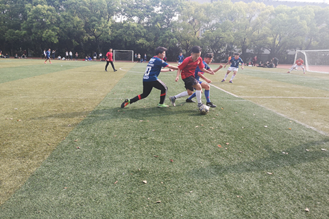 下午三点半,在哨声吹响那一刻,比赛准时开始。上半场的比赛在双方队伍的加油打气声中拉开序幕。在上半场化院足球队控球率较高,多次出现射门机会,队员们奋力拼搏、攻防俱备,场边时不时发出“好球”的呐喊,气氛激烈紧张。在数统足球队即将进球的危急时刻,化学学院门将姚俊精准扑球,力挽狂澜。但由于双方势均力敌,所以双方在上半场结束哨响时都与进球无缘。