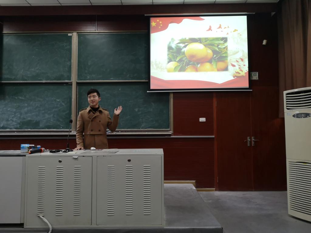 其后青年志愿者协会副会长汪宇由百元大钞后面的人民大会堂引入两会内容,通过两会召开地点与出入通道的多样化彰显两会跟随时代共同发展进步、再添新意。其中三大通道分别为部长、代表和委员通道,切实实现“两会民意零距离”。汪宇以代表们对5G物联网及5G手机的大面积投入使用等当下热点问题做出回应的例子开始自己的发言,结尾则以来宾市政协委员在现场幽默推销自己省份的柑橘以鼓励大家到来宾投资兴业做结,使参加会议的同学们也在认真聆听过程中忍俊不禁。