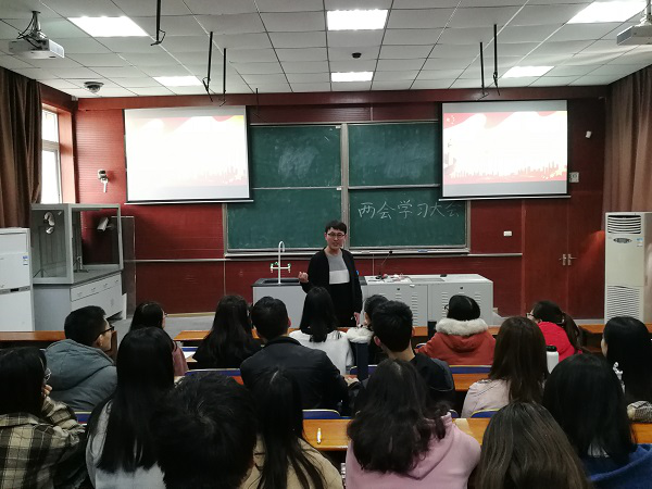最后,由化学学院2016级兼职辅导员刘鹏做了总结性发言,他提出希望预备党员和入党积极分子们能够更多的关心两会的相关事宜,并且结合现在的化学和师范专业丰富自己对于国家重大事项的认识了解与知识储备。